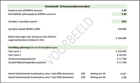 Het voordeel is uitgewerkt in samenwerking met Vattenfall, de Provincie Gelderland, de leden van de coöperatie en de OmgevingsAdviesRaad.